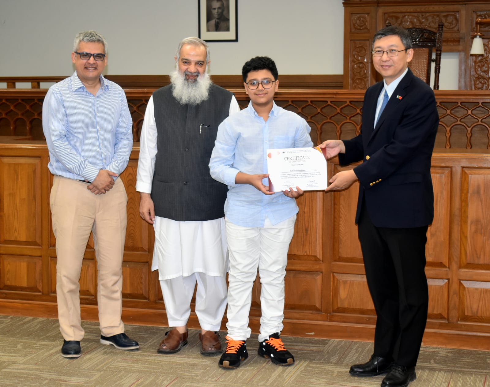 On August 1, 2025, the Centre for Chinese Legal Studies (CCLS), Shaikh Ahmad Hassan School of Law (SAHSOL) at LUMS, held the closing ceremony of the Chinese Language Course for Young Learners. The ceremony started with opening remarks by Mr. Cao Ke, Deputy Consul General of the People’s Republic of China in Lahore, who spoke on the role of language education and early cross-cultural exposure in supporting long-term collaboration and understanding between China and Pakistan.